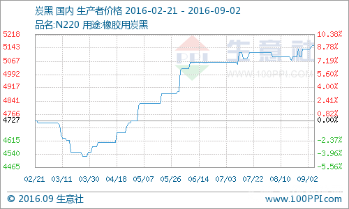 根据生意社数据监测显示炭黑N220型号价格走势如下:
