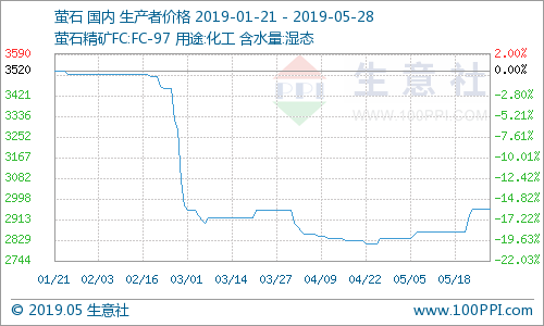 据统计,国内萤石价格走势暂稳,截止28日国内萤石均价为2956.25元/吨,近期国内萤石装置开车正常,场内矿山和浮选装置正常开工,场内萤石供应略显紧张,近期下游氢氟酸价格上涨,对于萤石市场按需采购,萤石市场价格走势上涨。近期下游装置开工情况一般,场内萤石现货供应正常,终端下游接货情况好转,导致市场价格走势上涨。截止28日内蒙古地区97萤石湿粉价格在2700-3000元/吨,福建地区97萤石湿粉商谈主流在2800-3100元/吨,河南地区97萤石湿粉价格在2700-3100元/吨,江西地区97萤石湿粉价格在2800-3200元/吨,萤石价格走势上涨。