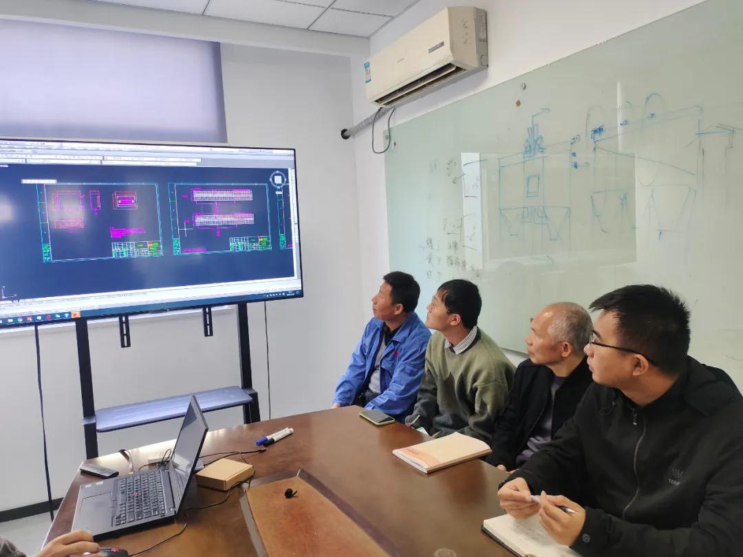 复盘会议中,产品及解决方案部经理向所有参访人员就本次参访竣工的除尘设备从基本原理到各部分的最终设计进行解析(从捕集系统、清灰系统、卸灰系统),同时对脉冲阀控制系统、数据采集系统进行详细复盘,通过理论与实际结合的模式,复盘现代袋式除尘设备技术现状。
