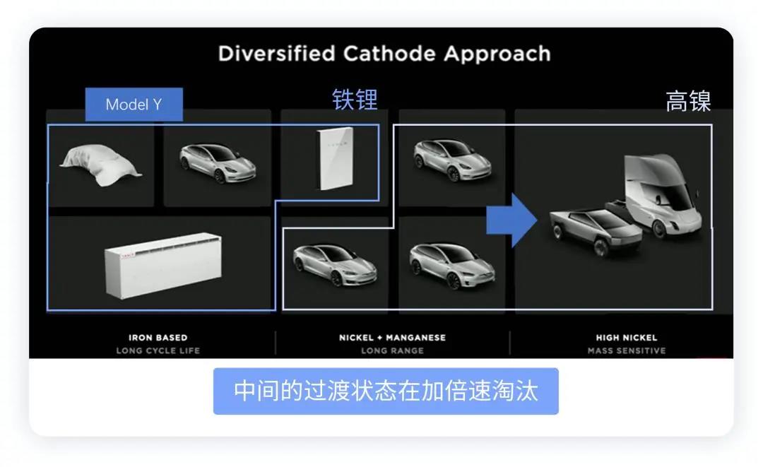 今年开始,铁锂的风潮流向海外,标志是Model 3、Model Y标准版会大规模采用磷酸铁锂电池。