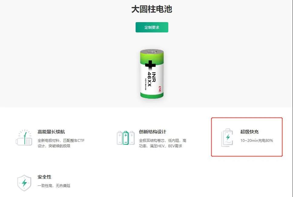 在亿纬锂能改版后的官网中,也在动力电池产品处新出现了大圆柱电池的身影。