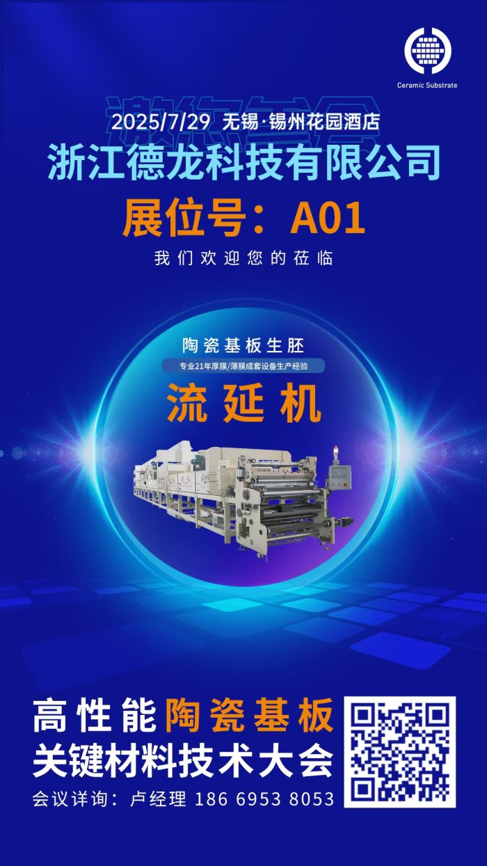 高性能陶瓷基板关键材料技术大会将于2025年7月29日在江苏无锡举办。浙江德龙科技有限公司作为参展单位邀请您共同出席。