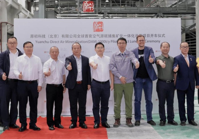 2024年10月24日,原初科技举行全球首套空气源碳捕集矿化一体化示范项目开车仪式。