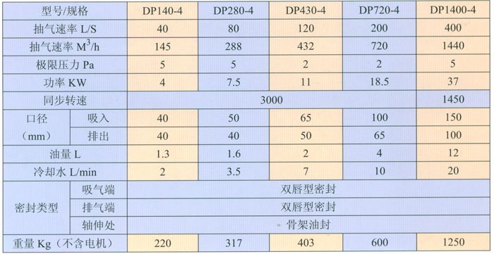 性能特点9br/>1.工作腔内无任何介质,可获得清洁真空、br/>2.工作腔及螺杆转子表面有防腐涂层,可适应恶劣工况、br/>3.气体在泵内无压缩,适宜抽取可凝性气体、br/>4.单台泵可从大气抽?pa,真空系统可大大简化、br/>5.水温对真空影响小,节水达90%以上,甚至可以不耗水、br/>6.不耗油,五滴漏、br/>7.旋转部件间五摩擦,可高速运转,整机体积小、br/>8.结构简单,维护方便、br/>9.被抽气体直接排出泵体,不污染水,无环保压力,气体回收更便捶br/>10.可与罗茨泵、分子泵组成无油机组、/span> 性能参数