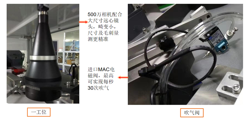 一工位:用于对产品的尺??外径/线径)和毛刺不良进行检测,**精度可实现?.05mm、br/>