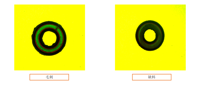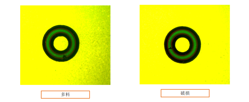 检测项目:缺料、多料、破损、堵孔、断裂、凹坑、毛刺、粘皮、模脏、包风、流痕、杂质、内/外径、线径、变形等、/p>