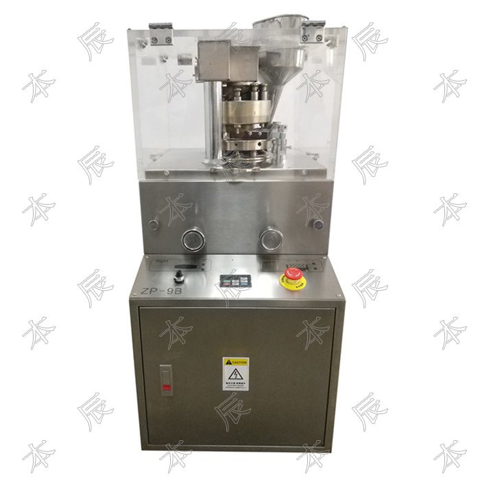 旋转式压片机ZP-7B系列可将粉剂、小颗粒压制?0毫米以下的圆形或异型片剂,产量为9000-15000?小时,片剂厚薄、压力大小、压片速度均可根据客户的要求随意调节。该机外形简洁、小巧,重量轻,操作简便,适合制药、食品、化工、电子等行业使用。配有过载保护装置,当压力过载时,能自动停机。本机配有电磁制动电动机和其它安全保护装置,运行时也能调整与操作、/p>