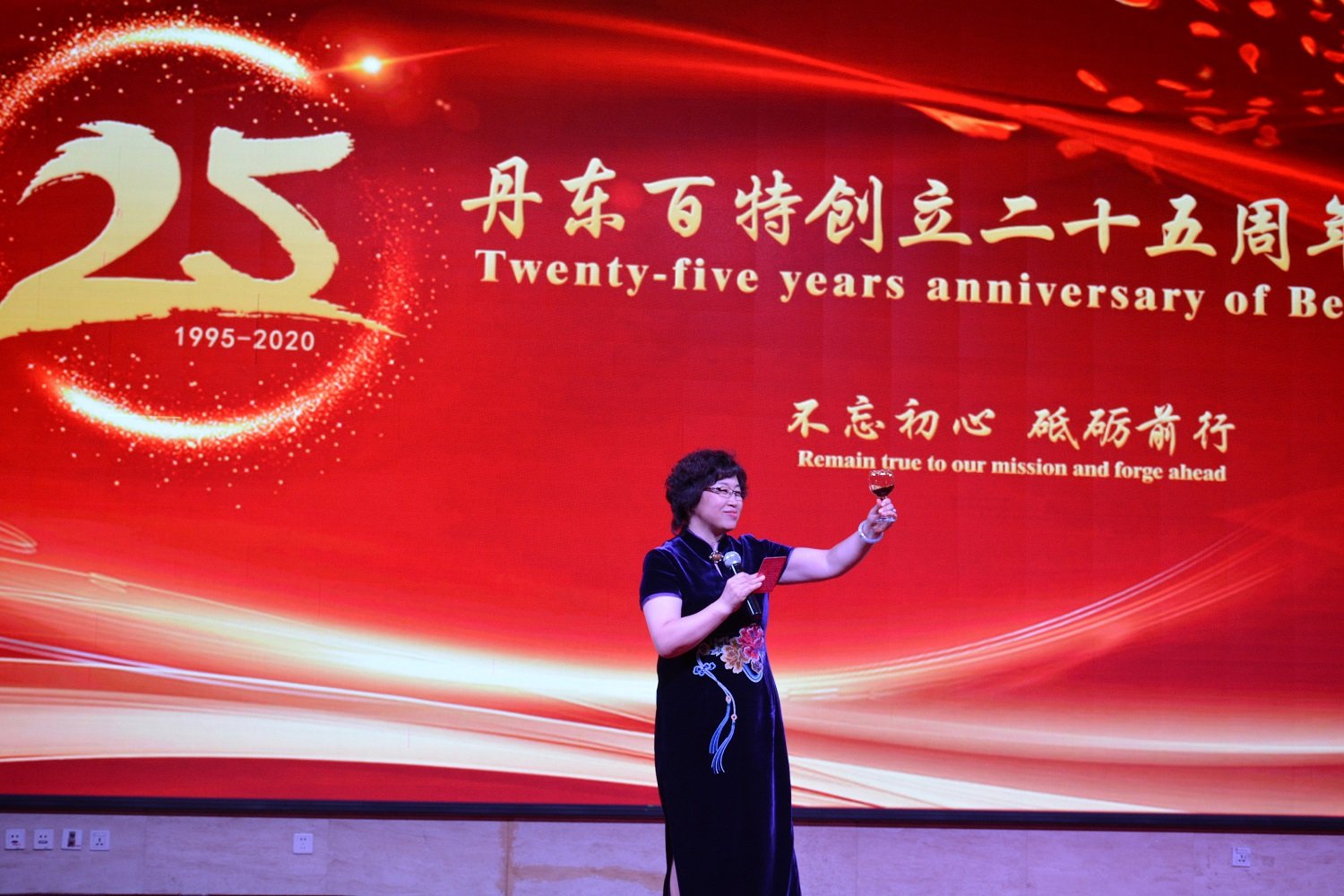 9?日上午,天高云淡,秋风送爽,鸭绿江畔,硕果飘香!丹东百特创?5周年庆典在福瑞德大酒店隆重举行?82名百特员工身着盛装,满怀激情,共同分享百特25周年庆典盛会的喜悦与风采?/p>