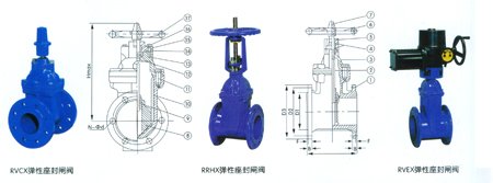 两端面距 (L)符合GB12221之短体型标准 RVXX表示非明杆式闸阀,RVXP表示附省力装?nbsp;