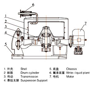 1.出液?.外壳3.传动部件4.转鼓部件5.翻盖6.电机7.制动部件