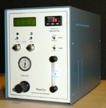 使用高质量的RH探针或露点分析仪来检测混合气体中的水分量。根据需要调节气体流量比以达?/span>所需的RH值。从歧管输出流通过加热的传输线输送到选择的位置。通过特殊的控制器板将传输纾/span>的温度自动保持在饱和器温度、/span>