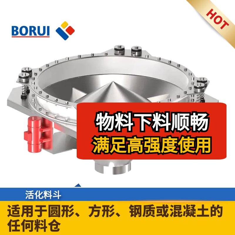 活化料斗为圆锥型,通过振动对料斗或筒仓的出料进行助流、/span>
