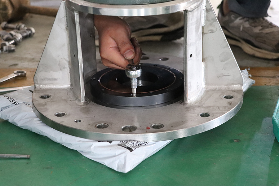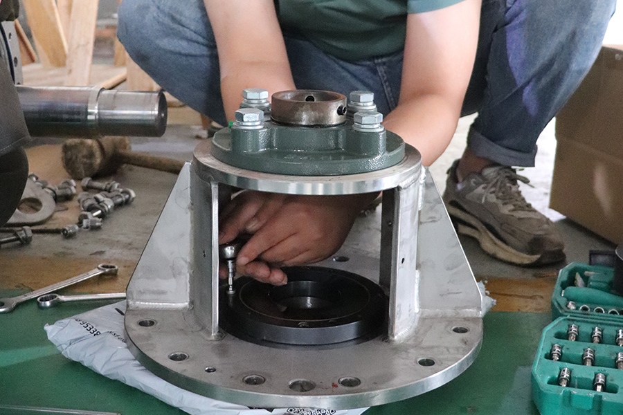 由于输送机主轴、支撑座尚未完全固定,安装团队采用分步作业方式,确保轴封的正确安装: