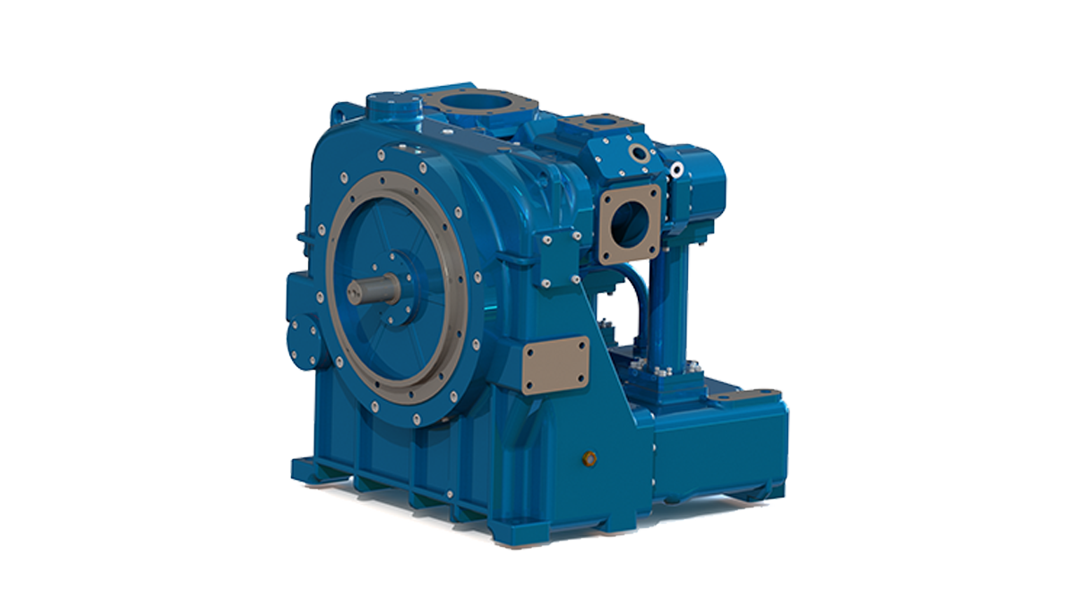 内置齿轮传动单元,一二级转子通过主从动齿轮传动达到合理的线速度,容积效率达?*:/p>