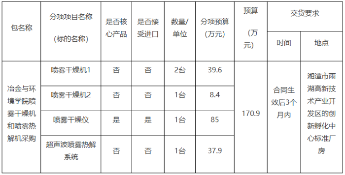 项目名称:中南大学先进材料冶金与环境学院喷雾干燥机和喷雾热解机采购项?/p>