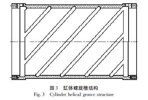 3 的结构可保证冷却水不走短路,增加螺旋槽的头数,可有效地增加和利用缸套和缸体的传热面积,提高冷却效果。缸?2 外圆柱面与缸?3 内圆柱表面配合连