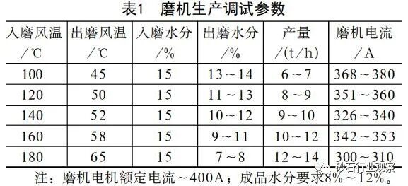 膨润土因其层状结构特性,若生产中失去过多水分,达?%以下,就会减活或失活。所以,通入磨机的热风温度需控制在合理范围内。磨机生产调试参数见?、/span>