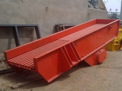 振动给料机工作原琅br/> 振动给料机主要由振动机架、振动电动机、弹簧、支承座及耐磨衬板等组成。由于振动电动机的启动,使机架在支承弹簧上作强制振动,物料则以此振动为动力,在料槽上作滑动及抛掷运动,从而使物料前移而达到给料目的、/p>