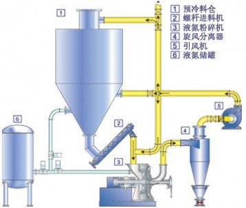 粉碎系列——LN型系列深冷粉碎机产品概述:LN系列深冷粉碎机是利用冷却到脆化点以下时对冲击变得极脆(低温脆性)的特性,在防止粉碎时的发热引起的材料变性的同时进行粉碎的方法。一种新型节能低温破碎机,采用冲击式破碎机,内置分级机,提供高效破碎功能,将冷冻机和旋风分离器储存在一个紧凑的冷藏箱中,使冷热损失最小。工作原理:原料放入料仓,用液氮(LN2)预冷,然后由螺旋输送料机输送给粉碎机。另外,由于直接供给的液氮(LN2)将...
