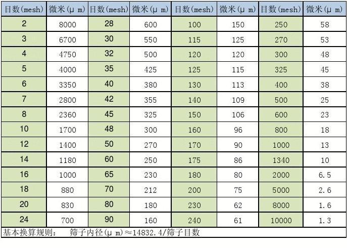 粉末粒径和目数的关系