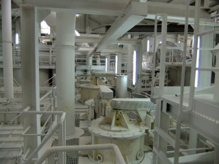 参观阿肯图公司希腊承建的10万吨交钥匙工程,该生产线由一?30Kw球磨机与5台气流分级机组成,球磨机功率630KW, 分级机是?台(2台ALPHA800?台ALPHA400,1台alpha500),产量分别 alpha800 每台产量3.6吨每小时 d98<10um,两台合?.2吨每小时,ALPHA400每台D98<6um 1.2吨每小时,两台合?.4吨每小时 20um由ALPHA500生产...
