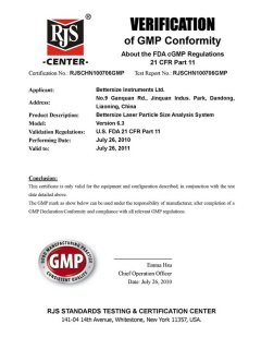 百特激光粒度仪获美国FDA 21 CFR Part 11 认证