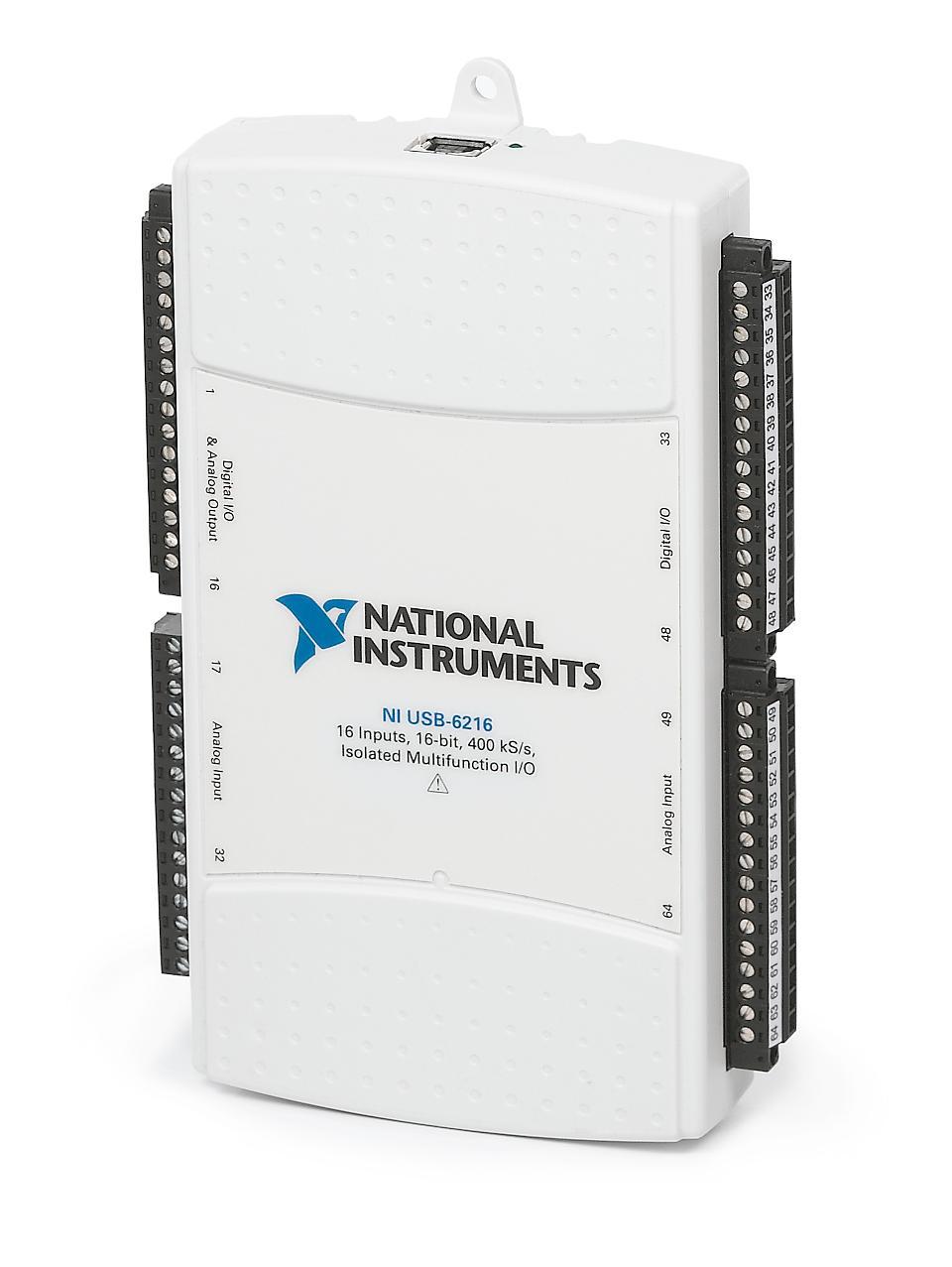 NI USB-6216 多功能I/O设备在基于计算机的系统的单个设备中提供模拟I/O、数字I/O以及计数?定时器功能的组合、strong>NI USB-6216 多功能I/O设备提供不同通道、采样率、输出速率及其他特性的I/O组合,以满足多种常见测量需求。这些设备是各种工业应用(如实验室自动化、研究和设计验证)的理想选择。内含的DAQExpress?配套软件提供了基本的测量和分析,而NI?DAQmx驱动程序可用于创建定制的自动化测量和控制应用程序、/p>