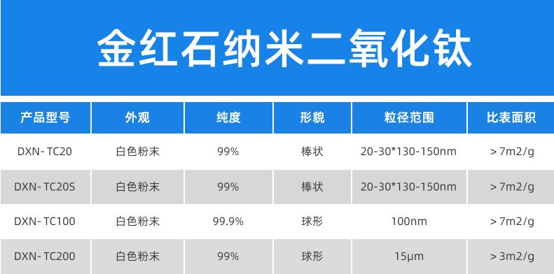 金红石纳米二氧化钛纯度高,白度高,粒径均匀,具有优异的遮盖力和抗紫外线性能,化学稳定性好,可用于化妆品中做防晒成分使用。还可用于涂料、塑料橡胶等领域作着色剂、添加剂,提升制品的耐候性、抗老化能力、/p>