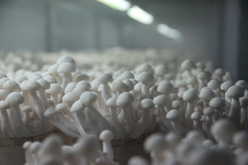 现蕾后要及时打开袋口,空气相对湿度增?0%-95%,加强通风和提供适当散射光,以促进子实体生长。若菇丛中菇蕾长得太密又参差不齐,应尽早疏去部分小菇蕾?