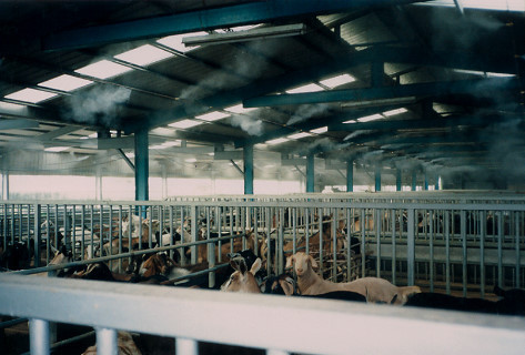 工作原理9/span>格润养殖场加湿器湿一般使用的是高压微雾加湿器。工作原理是利用高压柱塞泵将水压提高?-7Mpa,然后将加压后的水经耐高压输送管线由专业喷嘴将其雾化,产??5m的微雾颗粒,使其能够迅速从空气中吸收热量完成汽化并扩散在整个养殖场,从而完成养殖场的空气加湿、降温的目的、/span>