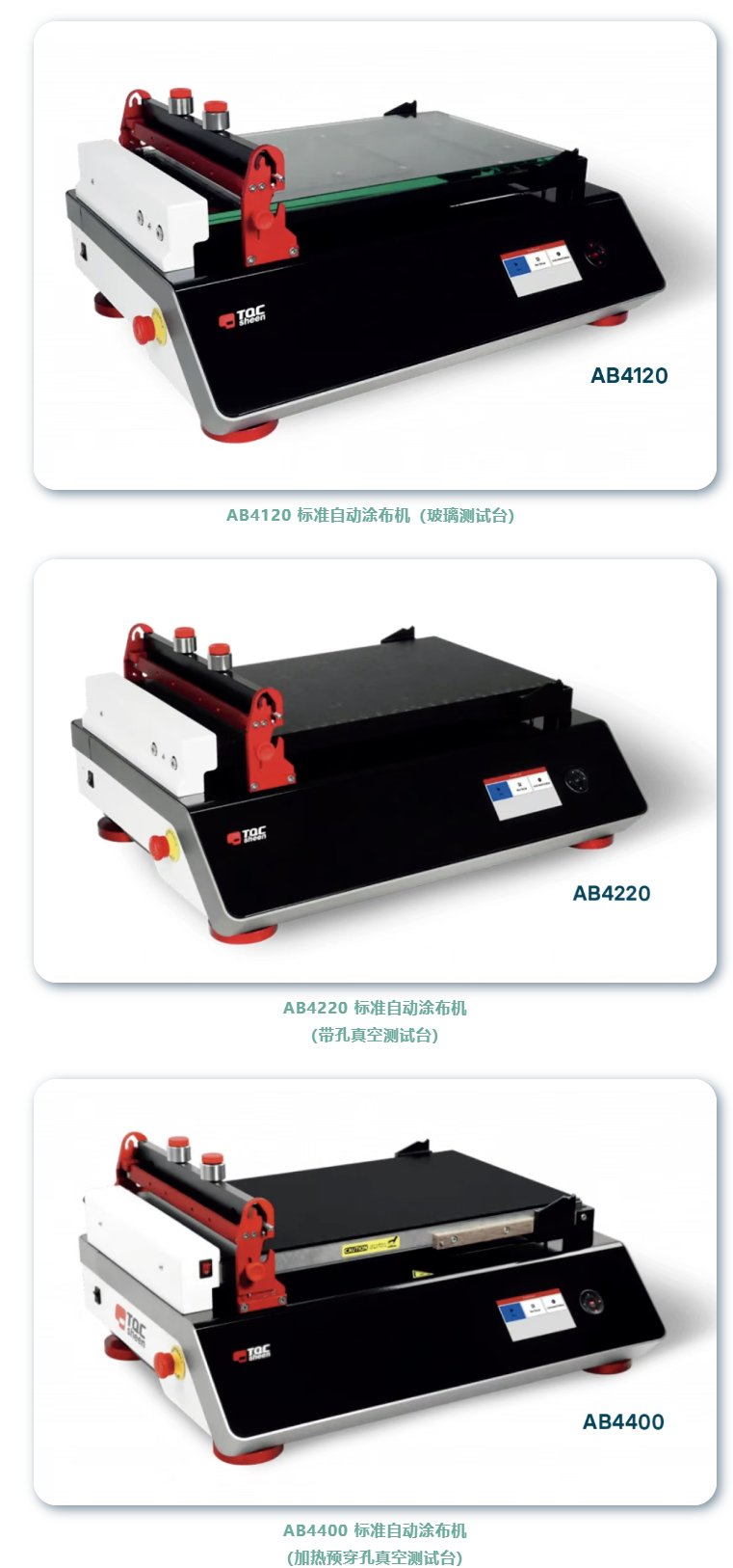 此外,我们还提供AB4320 标准自动涂布机(双通道真空测试台);以及最为基础的AB4420 标准自动涂布机(组合式,不含测试台)。满足您的不同需求与应用、/p>
