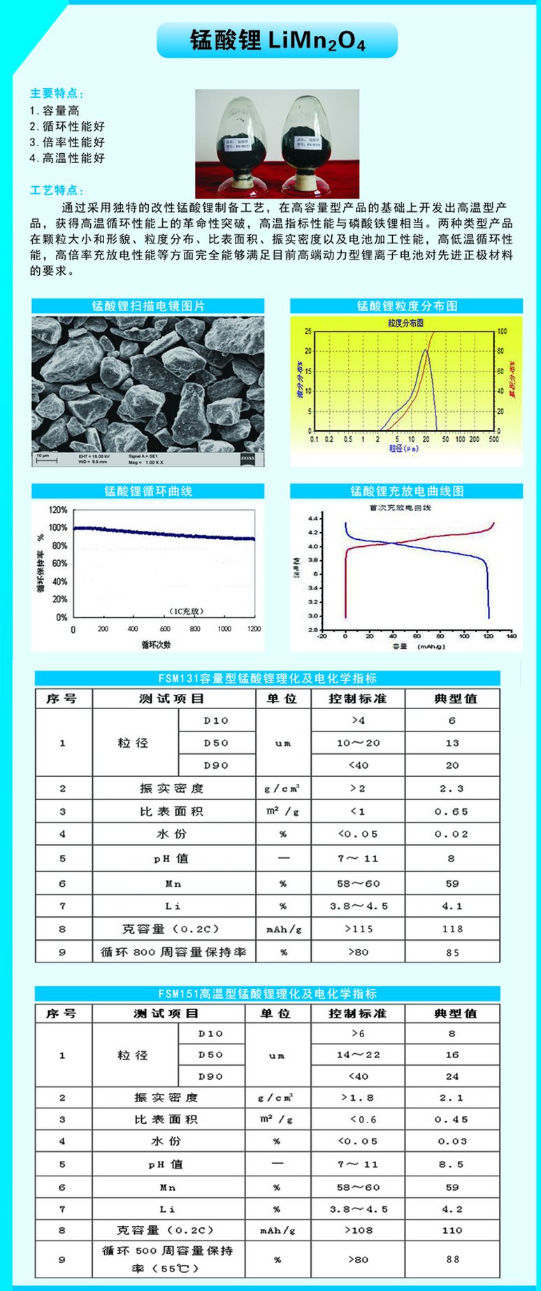 公司自成立以来,已投?.8亿元,建成两个正极材料车间、两个隔膜车间及两个电池车间。现已形成年产磷酸铁?000吨、三元材?000吨、锰酸锂材料1000吨的生产能力;年产隔?000万平米;锂电池引进比亚迪、力神等技术,现已具备动力型、容量型锂电池各1亿瓦时的生产能力、/p>