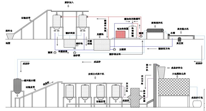 海南信义矿业有限公司日加工石英砂8000吨。由青峰矿业提供选洗矿及环保酸洗技术试?60余次,使用青峰矿业环保酸洗设?20套,年加工铁100ppm以下超白玻璃用砂140万吨、br/>
