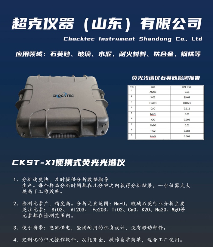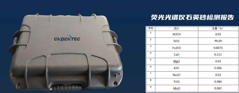 2、检测元素广,精度高。分析元素范図 Na-U。玻璃石英行业分析主要关注元紟Si02、AI203 Fe203 Ti02 CaO、K20、Na20、Mg0等元素都在检测范围内、/p>