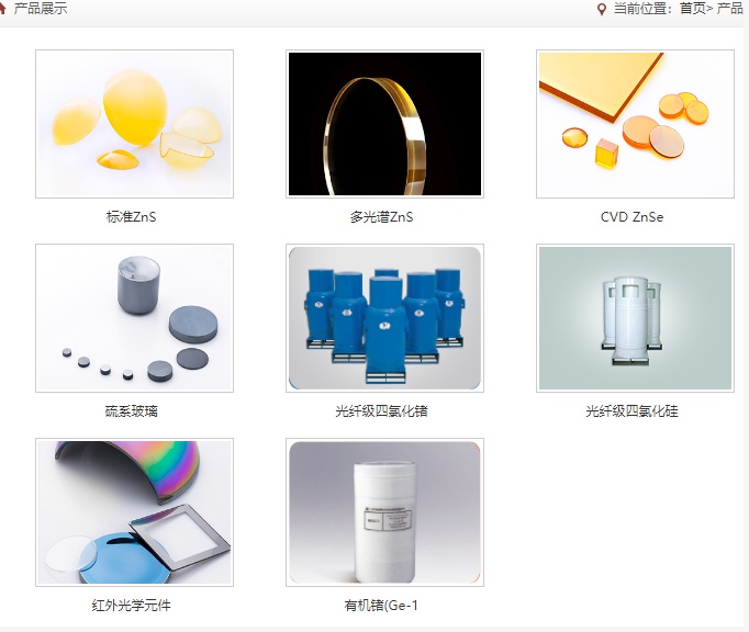 国晶辉公司专注于先进红外光学材料和光纤用高纯化学品的研发和生产,拥有CVD沉积、光纤用化学品纯化和 光学元件制造等三条生产线,主要产品包括CVD ZnS、CVD ZnSe、高纯四氯化锗和四氯化硅、硫系红外玻璃等 广泛用于红外热成像系统、激光加工设备、光纤预制棒等高科技领域,产品质量达到国际同类产品水平,是全球红外光学材料和光纤用高纯化学品主要供应商之一、/p>