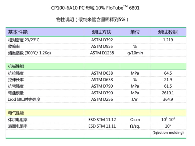 3. 碳纳米管导电母粒-CP100-6A10 PC母粒10% FloTube?6801