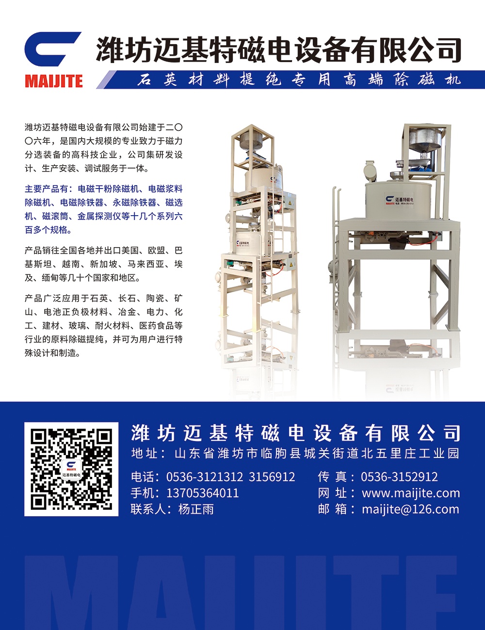 中国粉体网将?023??1日在安徽凤阳举办“第一届光伏行业用石英砂技术与市场交流大会”,潍坊迈基特磁电邀您一起参加、/span>