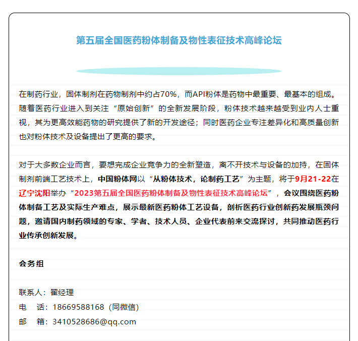 “第五届全国医药粉体制备及物性表征技术高峰论坛”将在沈阳·希尔顿逸林酒店举行,大连医诺生物股份有限公司邀您一同参加、br/>