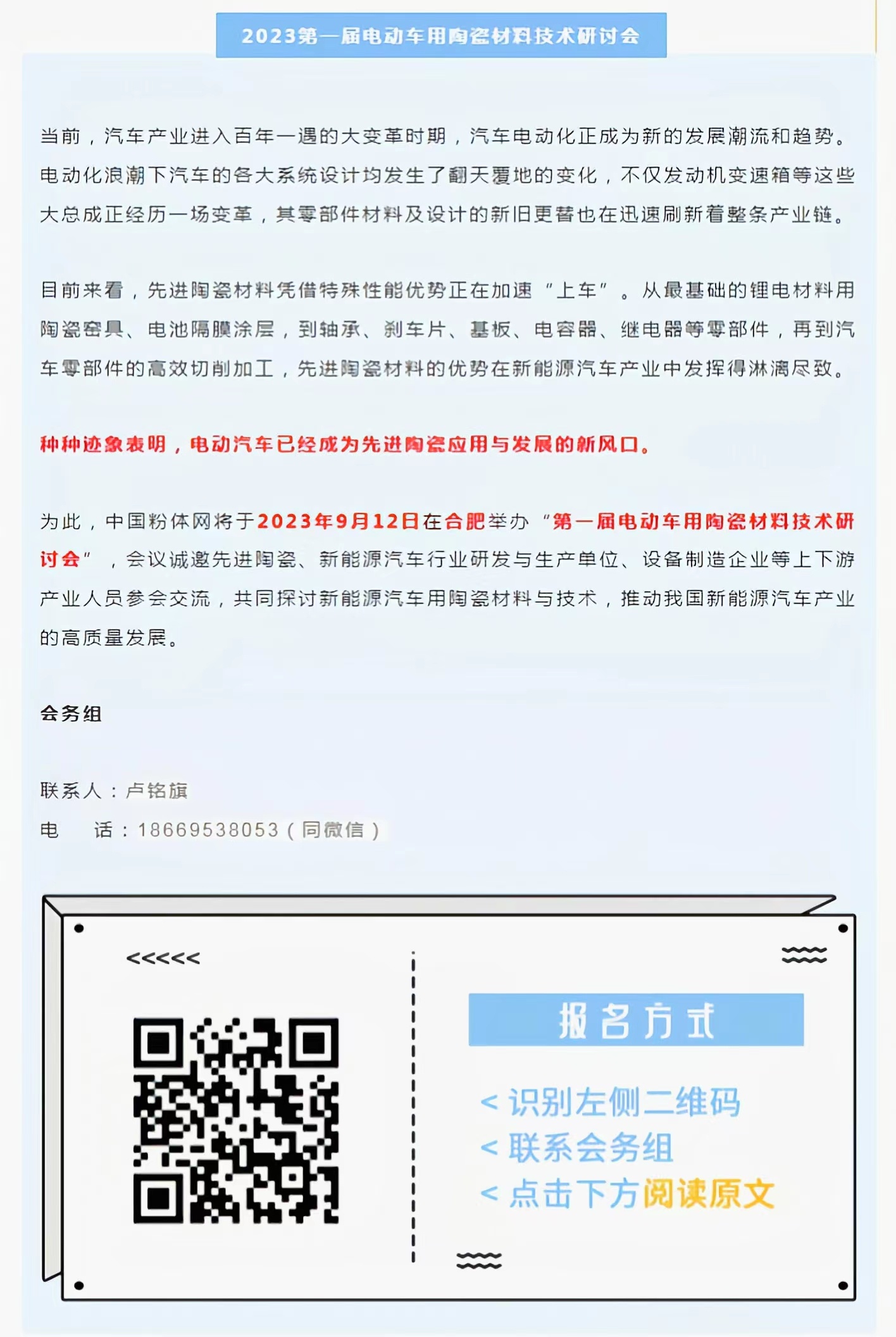 仍strong>第一届电动车用陶瓷材料技术研讨会组委会获悉,本届会议将于2023??2?/span>?span style="font-size: 16px; color: rgb(255, 0, 0);">合肥举办、span style="font-size: 16px; color: rgb(255, 0, 0);">常州市卓群纳米新材料有限公司邀请您共同出席、/span>