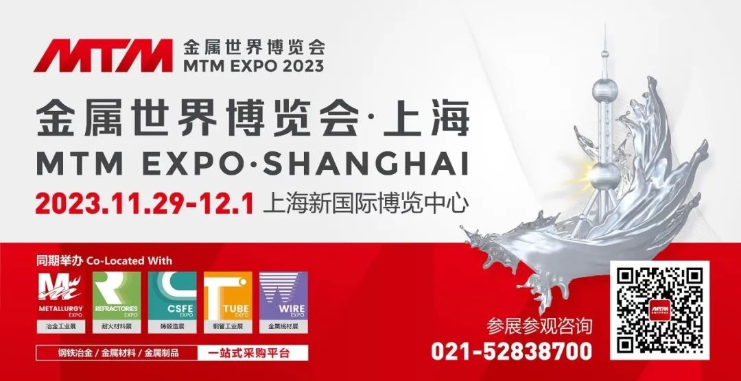 时隔两年,钢铁冶金行业盛伙/span>—–/span>2023MTM金属世界博览伙/span>回归上海,将亍/span>11?9日至12??/span>?/span>上海新国际博览中忂/span>隆重召开、/span>
