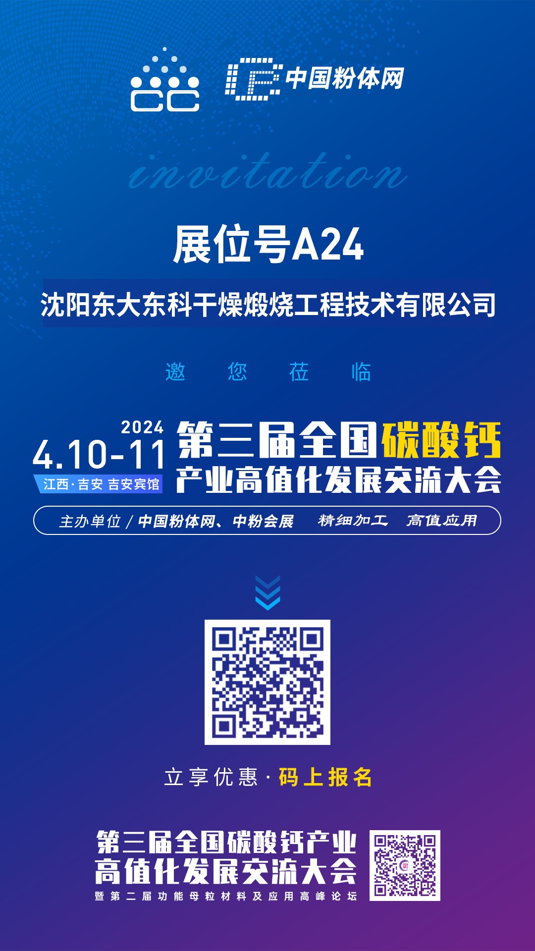 由中国粉体网主办皃/span>?024第三届全国碳酸钙交流会“/span>将于2024??0-11号在江西吉安举办沈阳东大东科干燥煅烧工程技术有限公司邀您一同参加、/span>