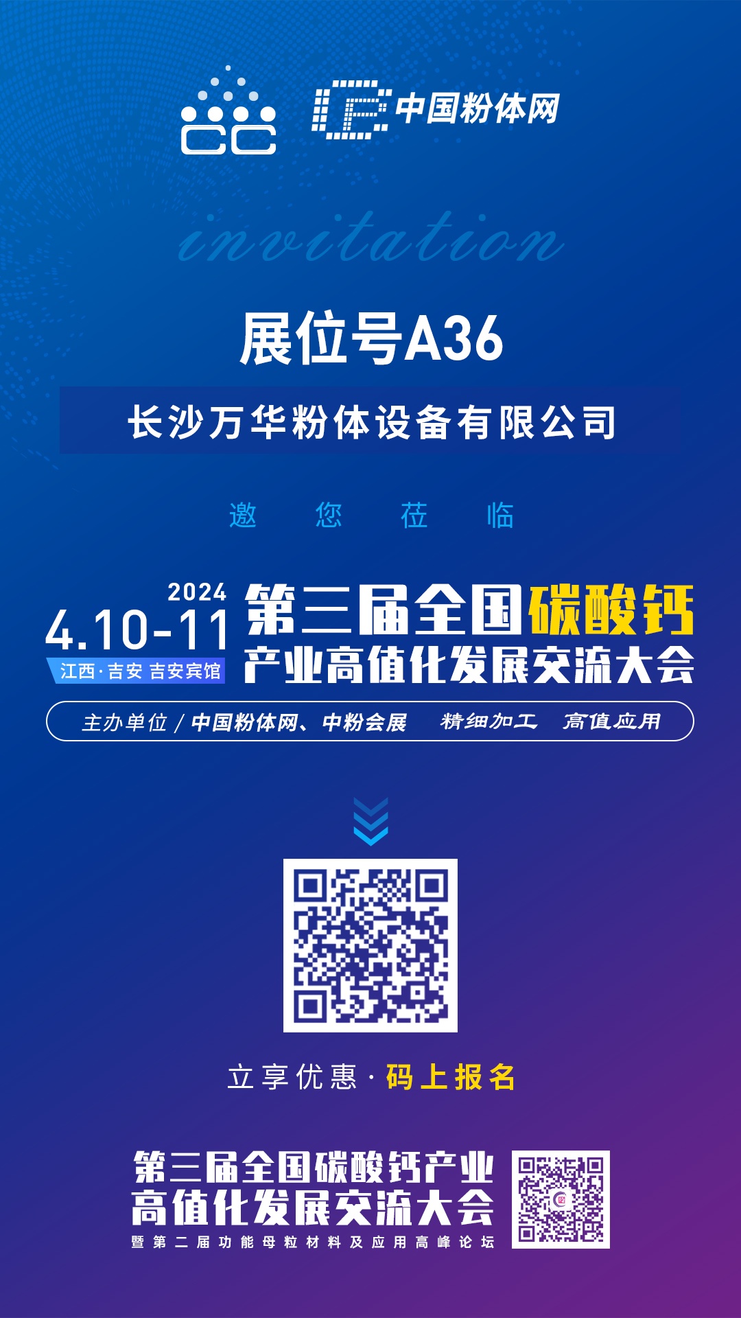 由中国粉体网主办的‛/span>2024第三届全国碳酸钙交流伙/strong>”将亍/span>2024??0-11号在江西吉安举办+/span>长沙万华粉体设备有限公司邀您一同参加、/span>