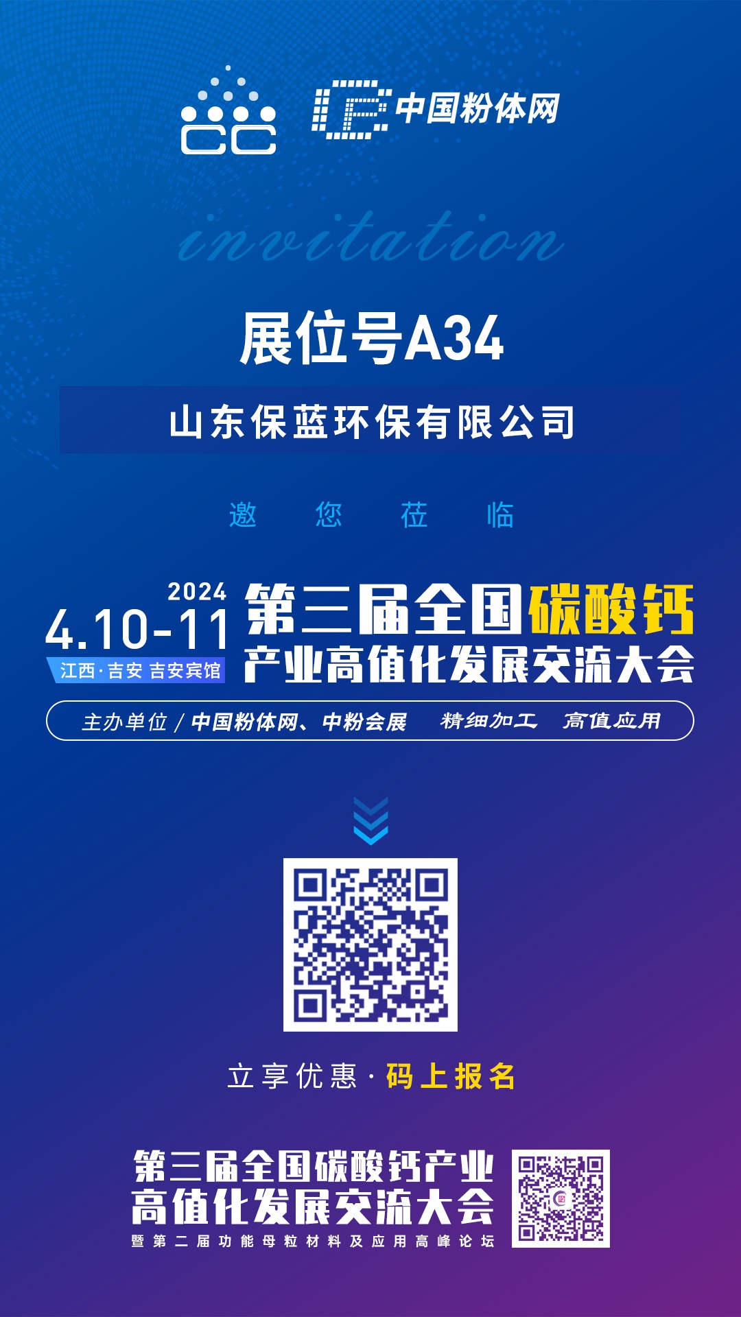 由中国粉体网主办的‛/span>2024第三届全国碳酸钙交流伙/strong>”将亍/span>2024??0-11号在江西吉安举办+span style="text-wrap: nowrap;">山东保蓝环保邀您一同参加、/span>