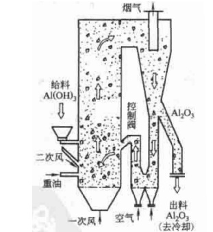 1、循环炉的核心部分是由反应器和旋风筒组成的再循环系统。燃料从反应器的下部喷入燃烧提供热量。焙烧产品带出的热量,在流化床冷却机内由一次风和二次风将其冷却回收,旋风筒废气所带出的热量,用于两级预热干燥段的氢氧化铝预热干燥及部分物料结晶脱水,从而回收热量,降低热耗、/p>