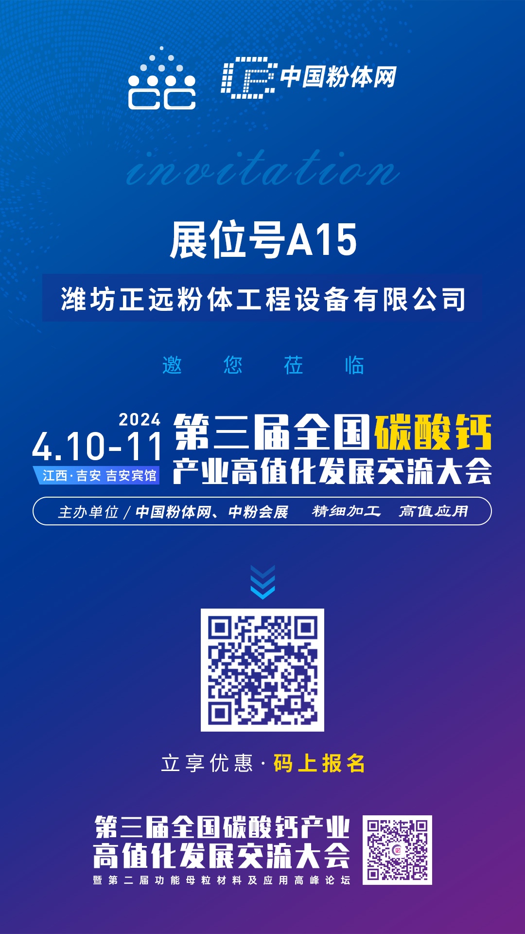 由中国粉体网主办的‛/span>2024第三届全国碳酸钙交流伙/strong>”将亍/span>2024??0-11号在江西吉安举办+/span>潍坊正远粉体工程设备有限公司邀您一同参加、/span>