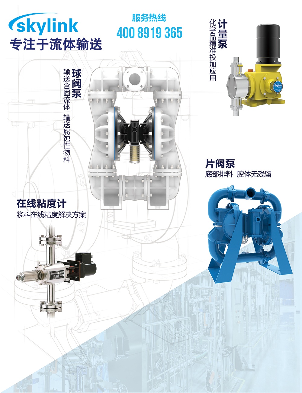 自品牌创立以来,斯凯力(SKYLINK)作为专业的隔膜泵制造商,一直专注于流体输送,为全球各行业用户提供解决方案、/span>