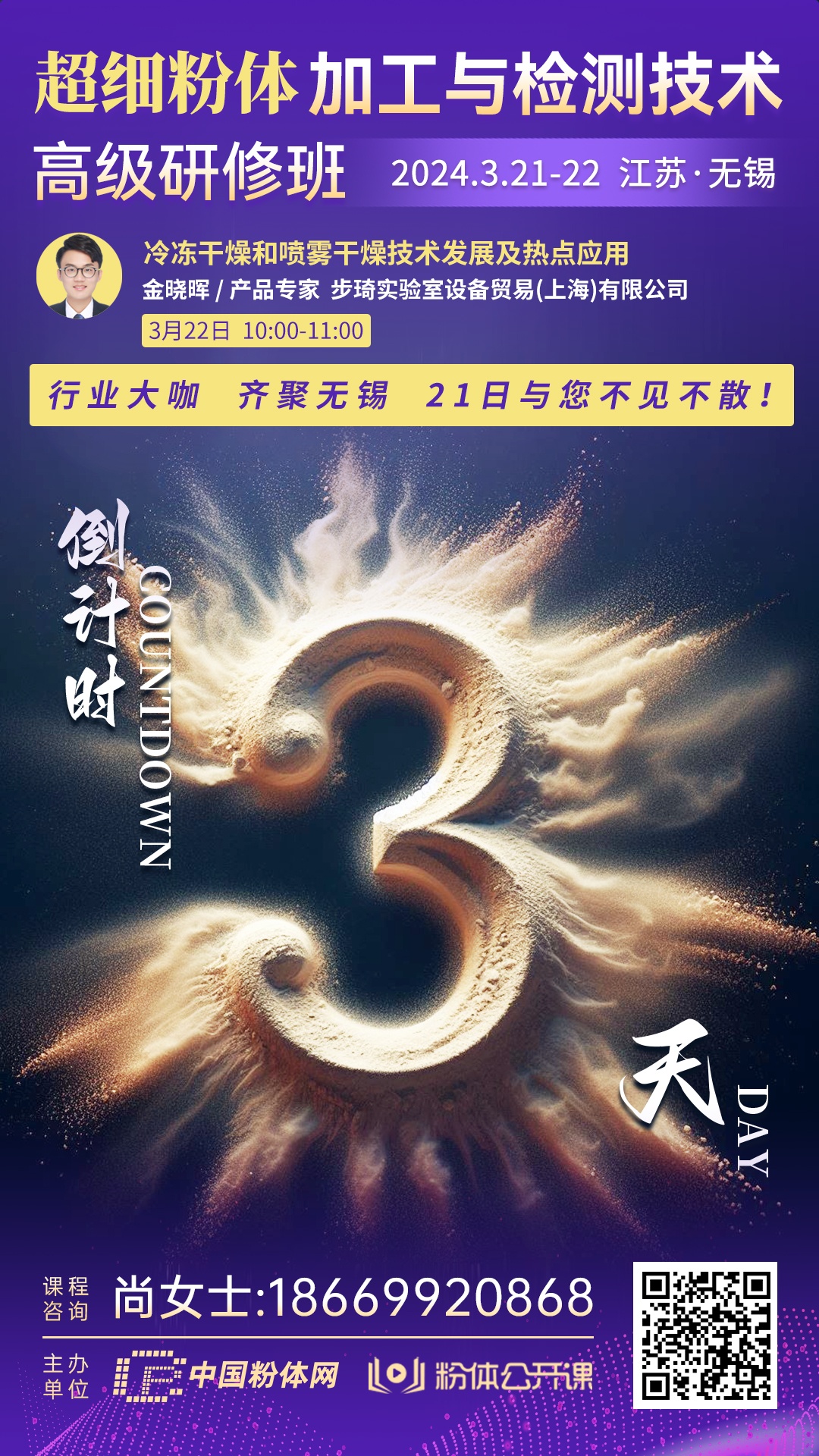 中国粉体网讯2024超细粉体加工与检测技术高级研修班将于3?1-22号在江苏·无锡举办,江西鹏腾实业有限公司邀您一同参加、/span>