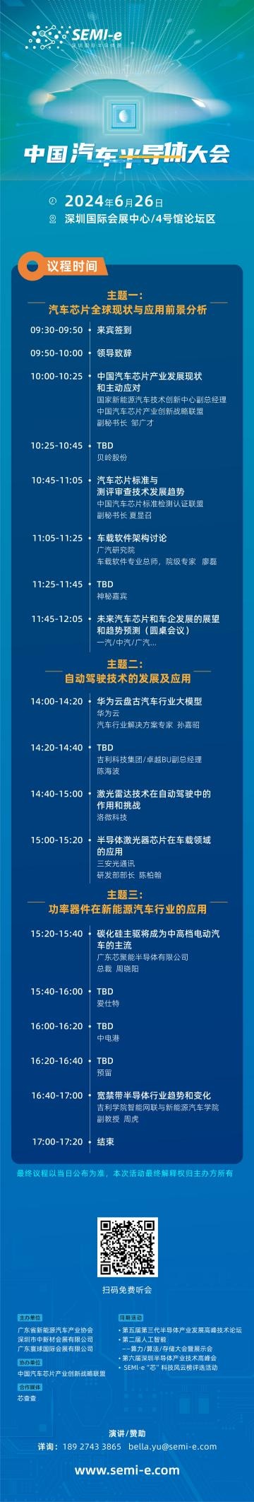 此外+/span>‛/span>中国汽车半导体大伙/span>“/span>也将成为本届展会的一大亮点。随着新能源汽车市场的蓬勃发展,汽车半导体已成为行业关注的焦点。本次大会将围绕汽车芯片的创新与应用展开深入讨论,为汽车产业的智能化发展提供有力支持、/span>其中华为、广汽研究院、吉利、三安、芯聚能半导体等代表企业即将分享精彩报告、/span>