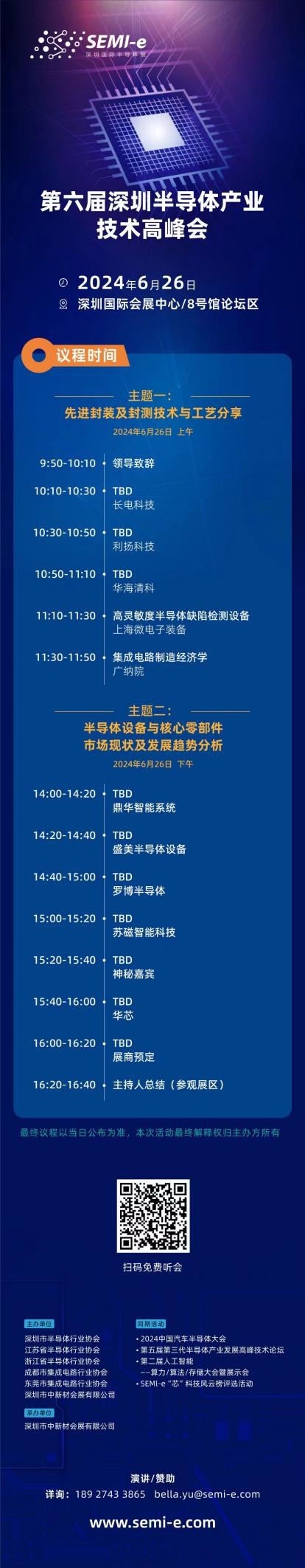 ‛/span>第六届深圳半导体产业技术高峰会“/span>将聚焦半导体产业的最新技术和应用趋势,积极把握深圳半导体产业发展机遇,推动打造涵盖设计、制造、封测等环节的半导体及集成电路全产业链、/span>长电科技、先导、芯碁微、盛美半导体、上海微电子装备、长川科技、广纳院、鼎华智能、罗博半导体、苏磁智能、华芯、镁伽科技筈/span>即将出席、/span>
