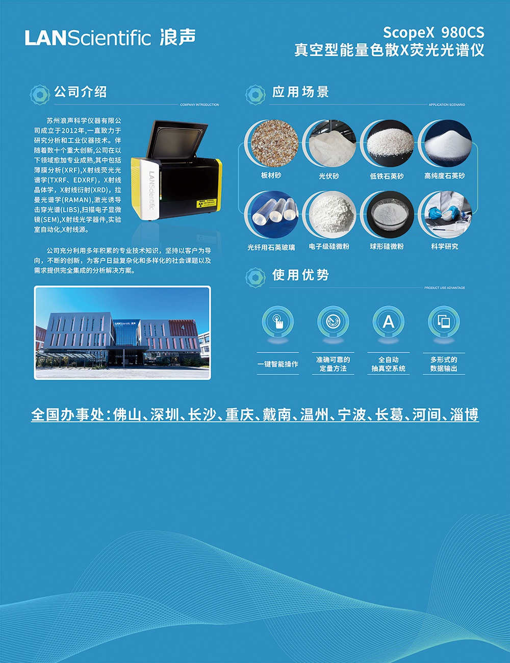 苏州浪声科学仪器有限公司成立?012年,一直致力于研究分析和工业仪器技术。伴随着数十个重大创新,公司在以下领域愈加专业成熟,其中包括薄膜分析(XRF),X射线荧光光谱?TXRF、EDXRF),X射线晶体学,X射线衍射(XRD),拉曼光谱学(Raman),电子显微学(SEM?激光诱导击穿光谱(LIBS),X射线光学器件,实验室自动化,X射线源 公司充分利用多年积累的专业技术知识,坚持以客户为导向,不断的创新,为客户日益复杂化和多样化的社会课题以及需求提供完全集成的分析解决方案、br/>